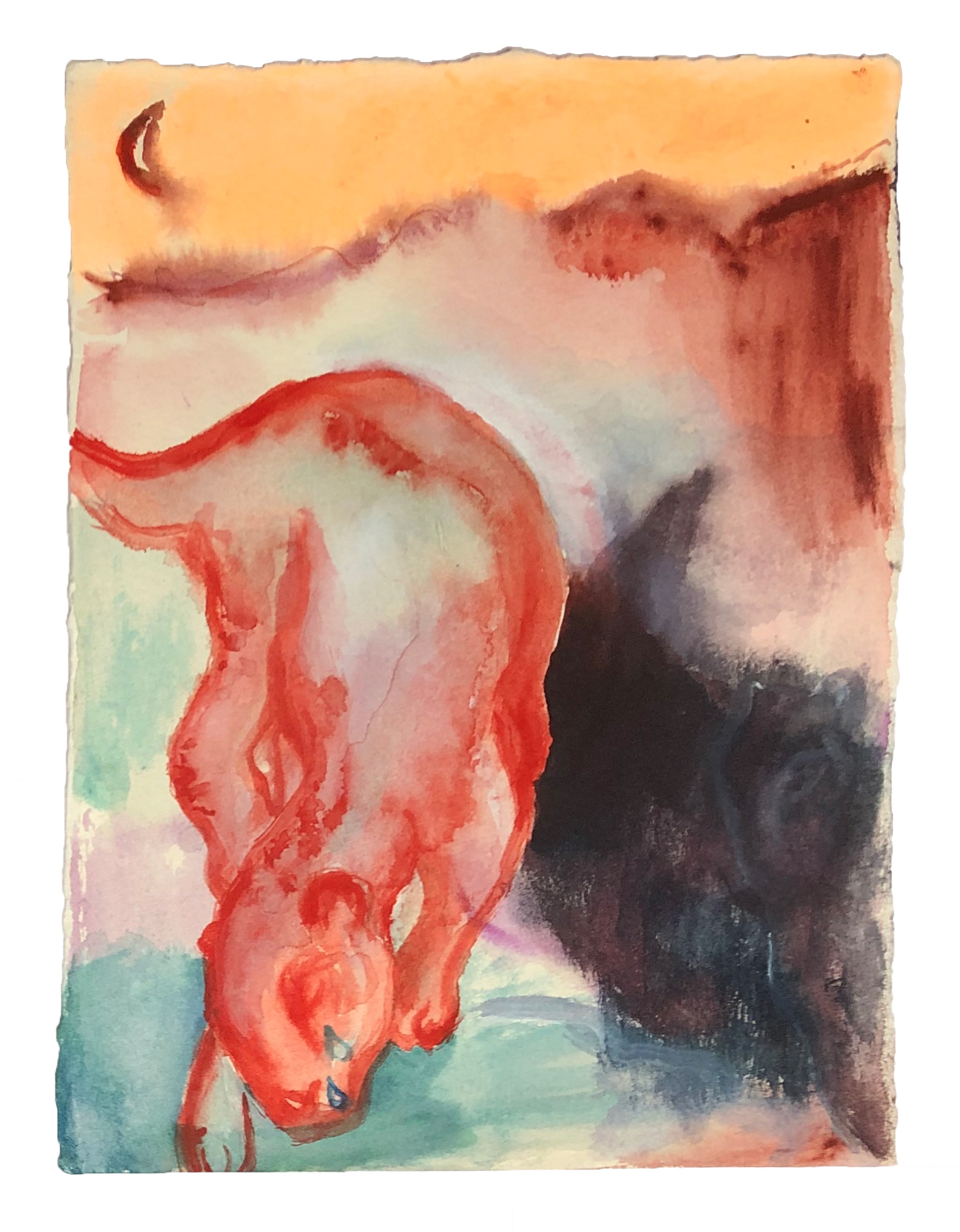 'Runaways' Watercolour on khaki rag paper, 39 x 28cm 2022