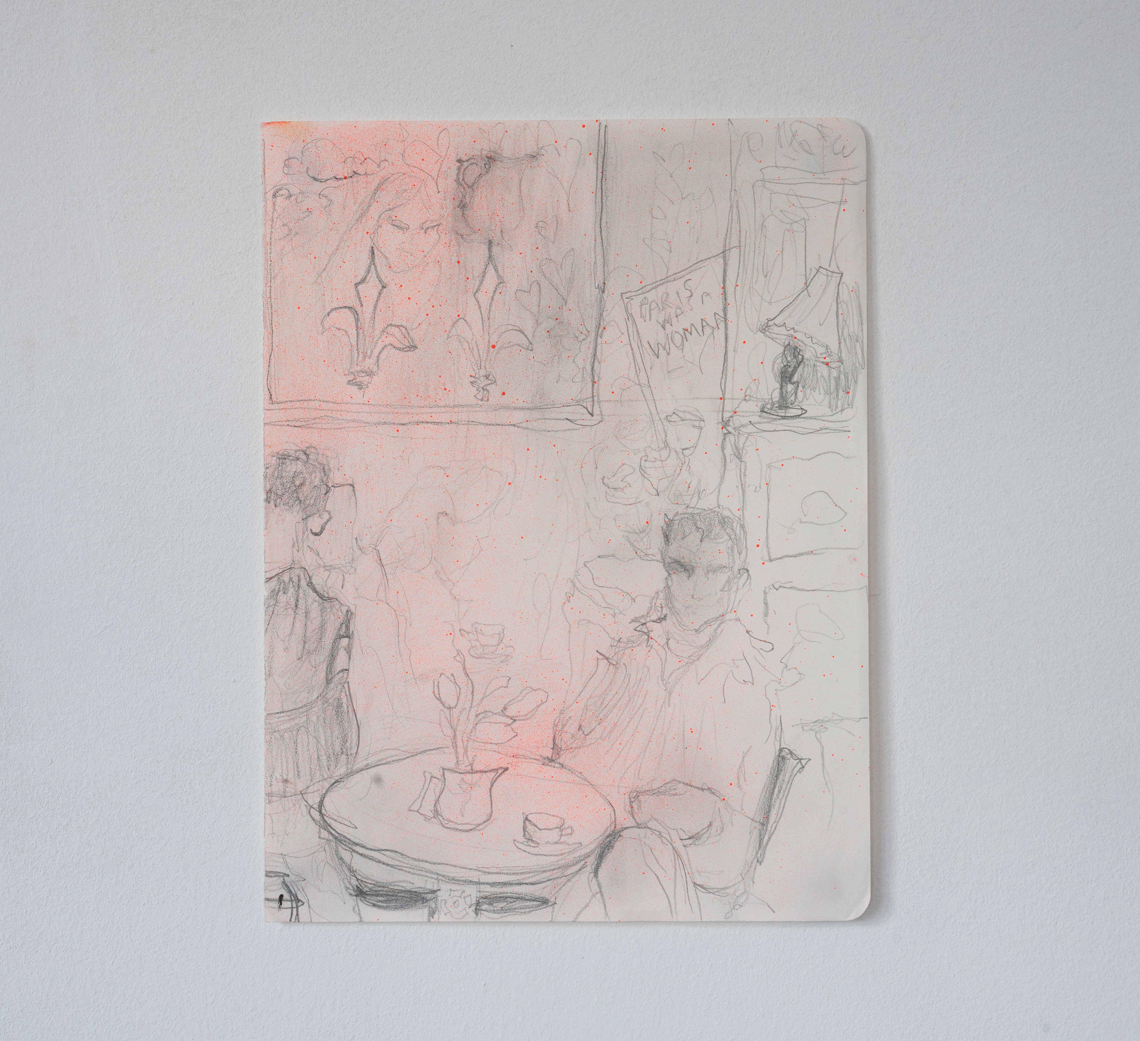 'One last candle with the Mona Lisa II' Oil and spray paint on paper, 30 x 40cm 2022